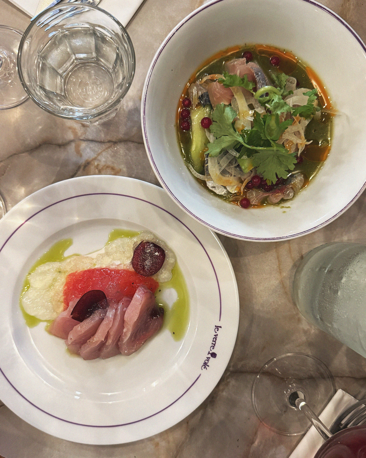 日本人のお兄さんがたまたま臨時でウェイターをやっていて、いろいろと話せたのが嬉しかった。お店の奥にあるワインセラーを見せてくれて、それぞれ丁寧に説明してくれる。日本のワインもあった。鯵のセビーチェと生のマグロにアホ・ブランコ。