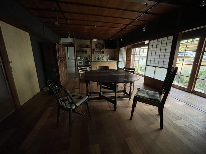 昭和の長い年月、大家族が住んで生活をしていた家に遠くから訪れてたった一人でいて、縁側の安楽椅子に腰掛けて月夜の小さな庭を眺める。キッチンでお茶を淹れて、広いダイニングでゆっくりと飲む。夜に家を抜け出すと歩いてすぐに海があり、海岸で星を見上げることができる。