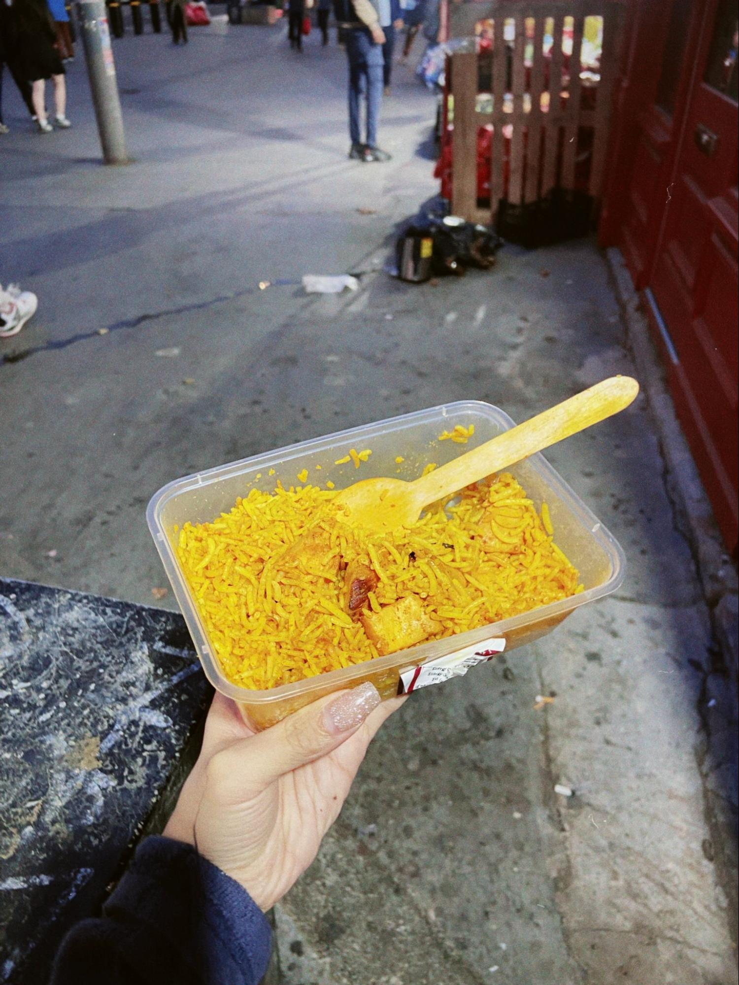 セントラルの方まで出掛けた日の夕方、乗り換えでWhite chapelを歩いていて、まっすぐ帰るにはお腹が空いていたので、駅の近くのハラルショップで友人がファラフェルを買った。