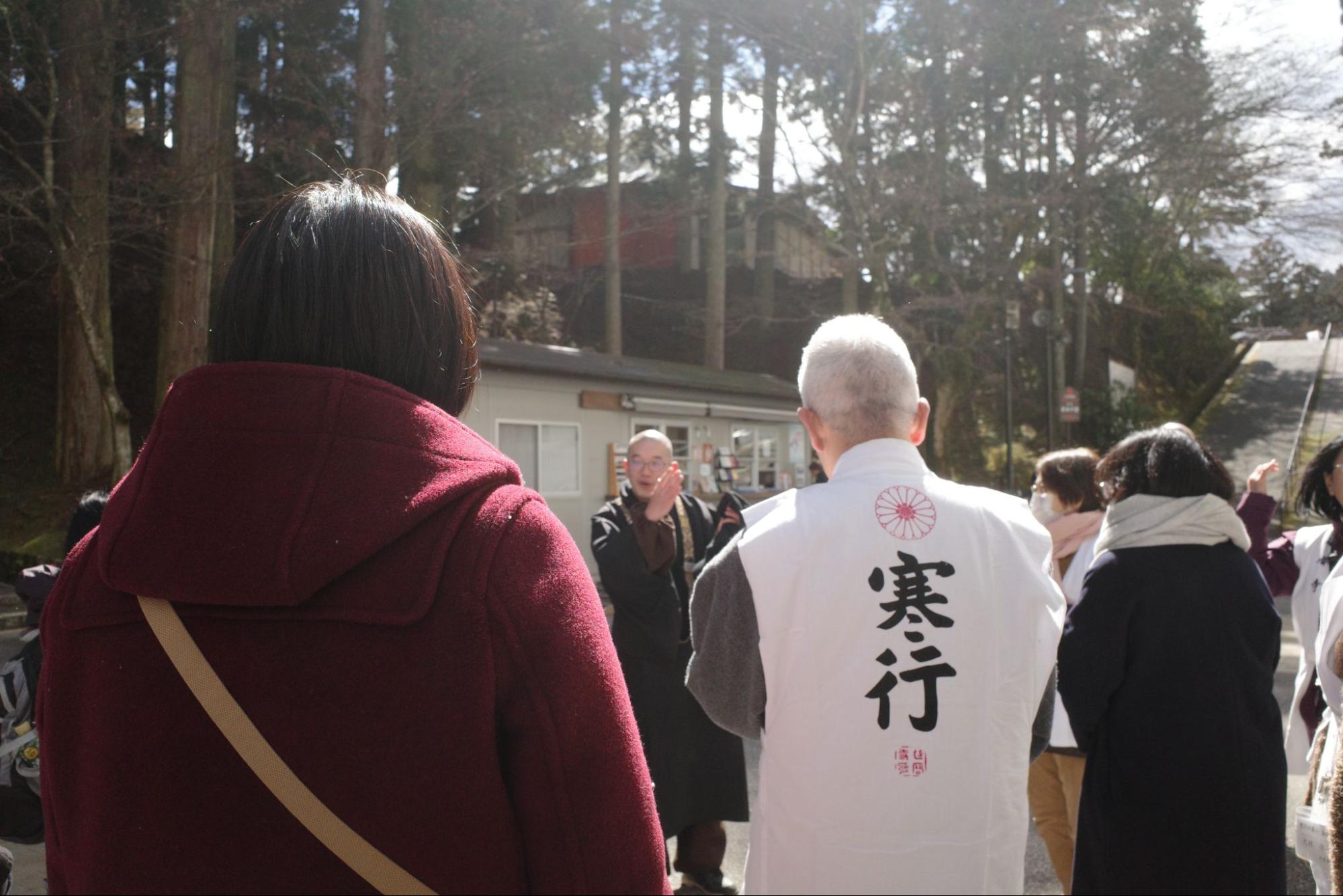 参加者には、背中に『寒行』と書かれた白衣(びゃくえ:修行用の衣装)が手渡され、期間中はそれを着用して過ごす