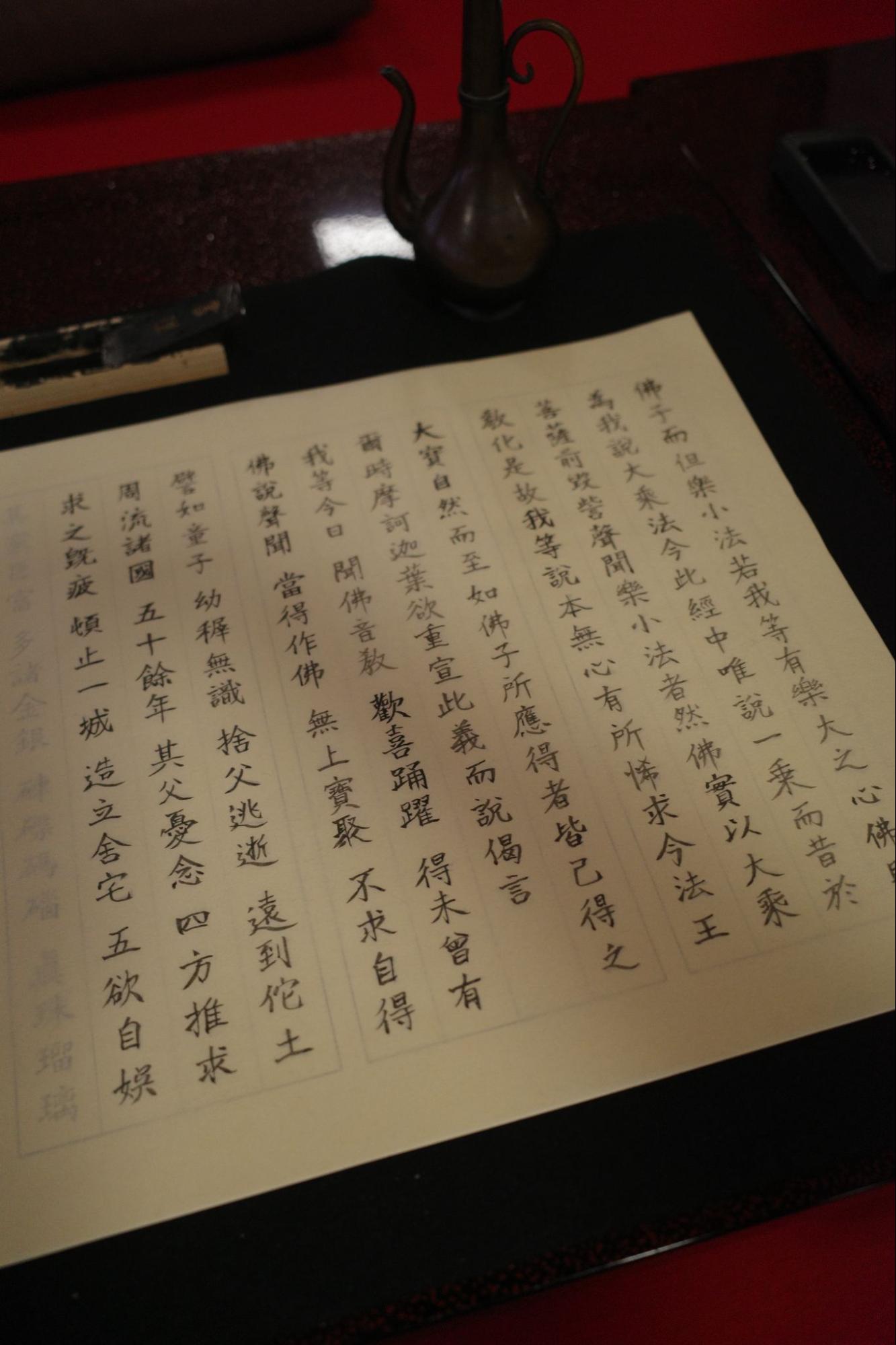 写経とは、印刷技術の未成熟だった時代に、仏陀の教えを広めるために経文を書き写すこと、つまり仏教の拡大に貢献すること自体を修行と見なしていたことに由来する、と教わった。