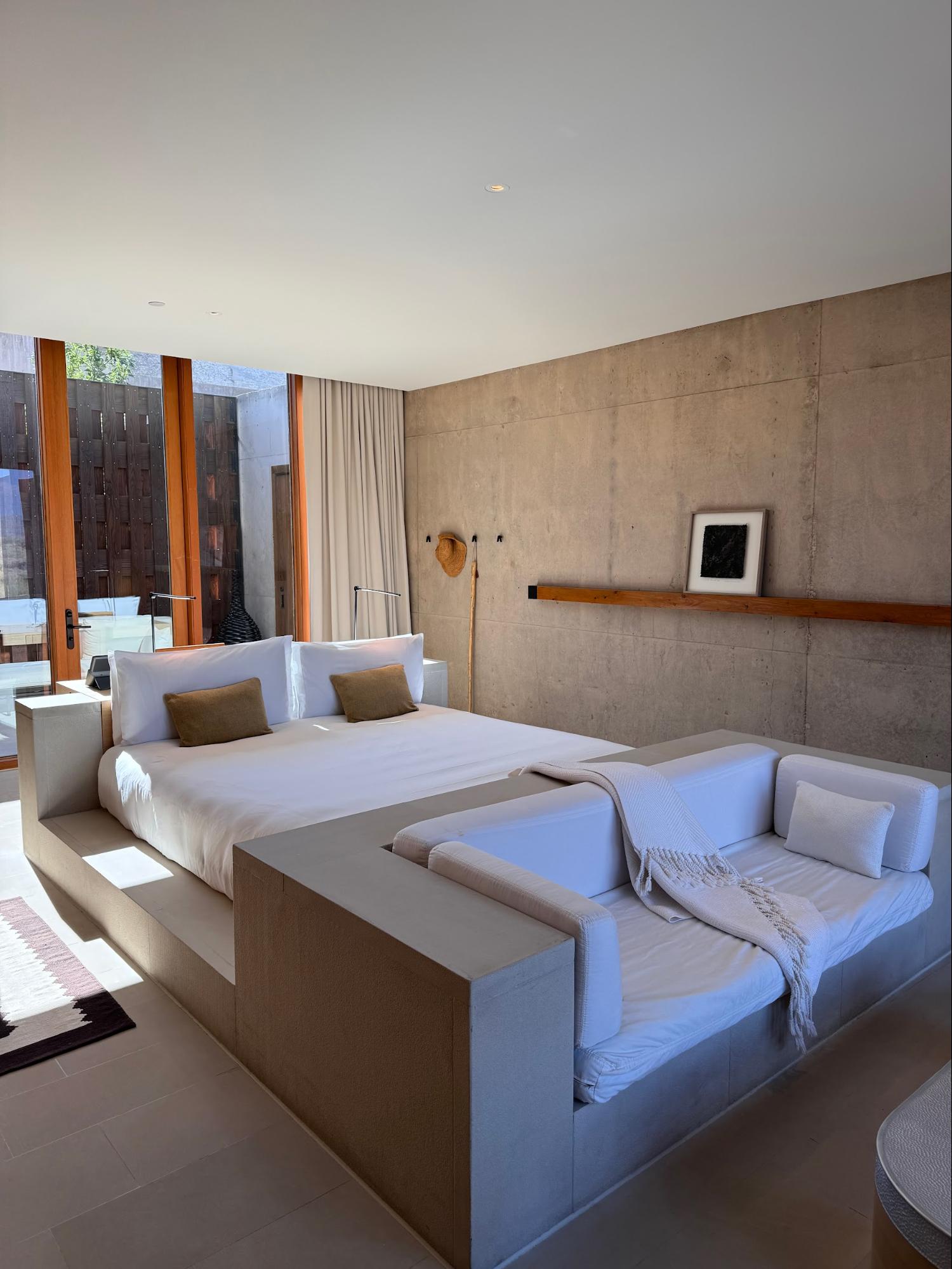 これまでアマングループのホテルには泊まったことがありましたが、「AMANGIRI」はやっぱりダントツですごかった。まず、土地が広すぎて、どこからどこまでがホテルなのかもわからない。砂漠を車で走っていると突然門が現れて、インターフォンを押して名前を伝えると、ゲートが開くんです。そこからまた建物まで10分くらい運転するんですが、その途中にトレッキングの道が整備されていたりして、建物に着くまでにもう圧倒されました(笑)。