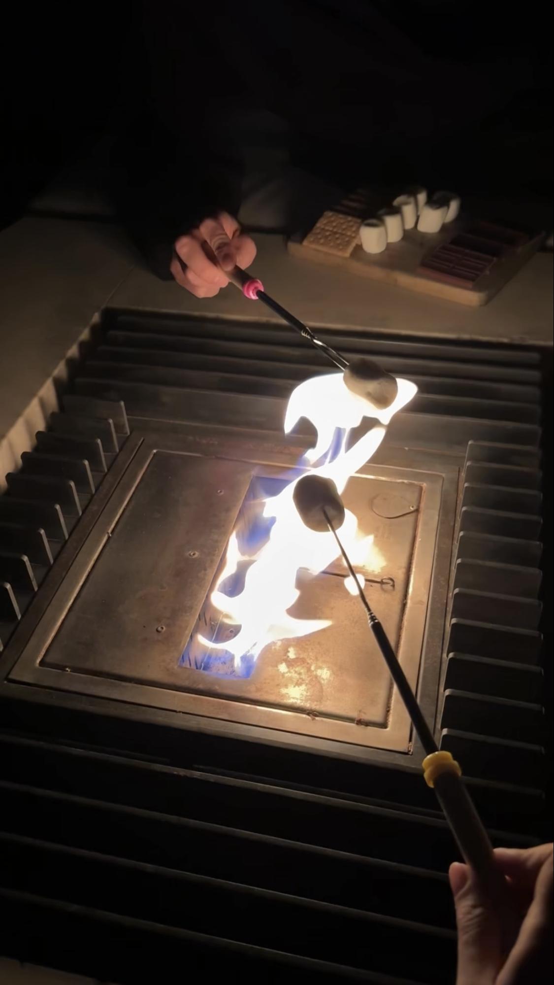 館内にはプールやジム、スパなど、なんでもあるので、とにかくずっとゆっくり過ごせます。お部屋の大きな窓からは外の風景がいつでも楽しめますし、部屋の外にある焚き火でサービスのマシュマロを焼いてみたりして、滞在を思う存分満喫しました。ただ、欲を言えば、やっぱり一泊だと物足りなくて、できれば二泊はした方がいいと思います(笑)。