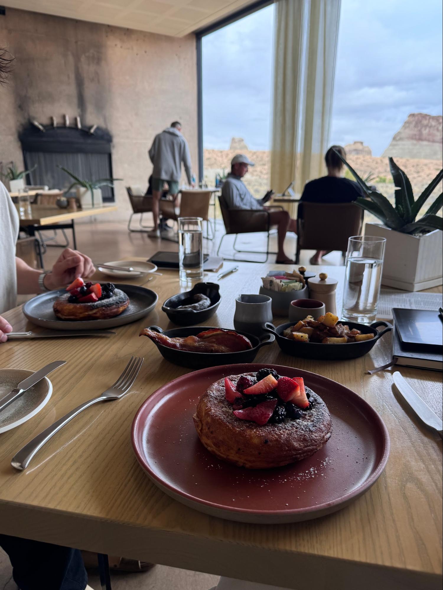 ちなみに、オールインクルーシブのプランだったので、滞在中の食事はいつどこでなにを食べてもOK。モーニングには薪で焼いたパンケーキを食べましたが、過去一美味しかったし、お刺身みたいな和食メニューまで、豊富にそろっていました。